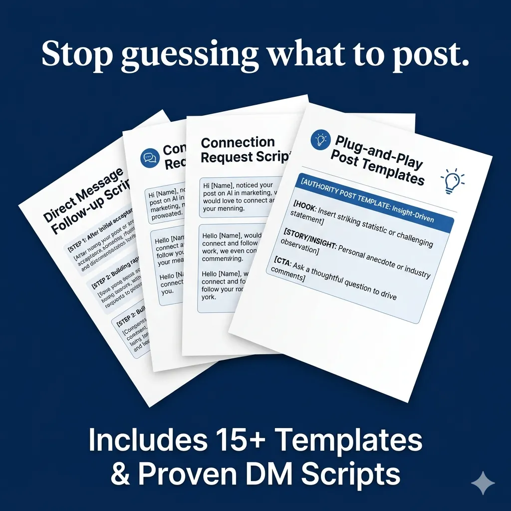"I had no idea what to post on LinkedIn before this kit. Now I've got 15 ready-to-use templates, and my posts are actually getting comments and conversations started. Landed two discovery calls in the first week."